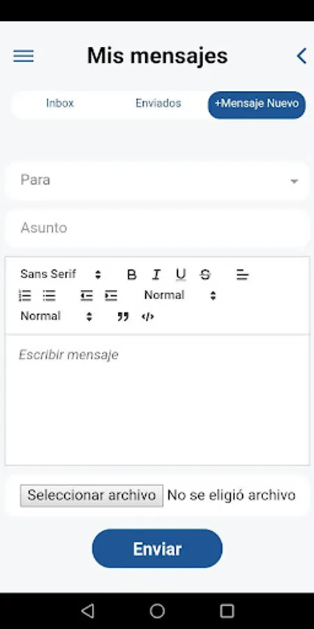 - Access to mail with the account of the platform (inbox, sent, new mail)