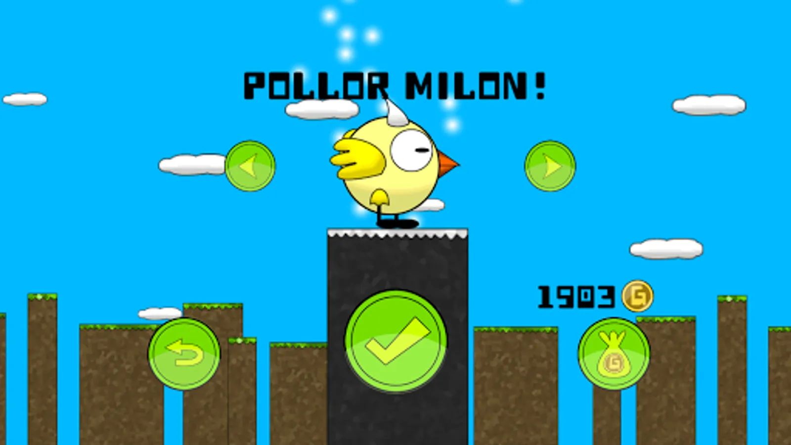 Guide Pollo Pollo until reach the Xtreme Level (Score 150) to unlock it and show the people you are the one that can arrive further. Collect coins and buy all the cute characters!