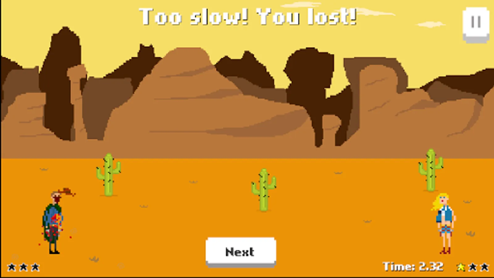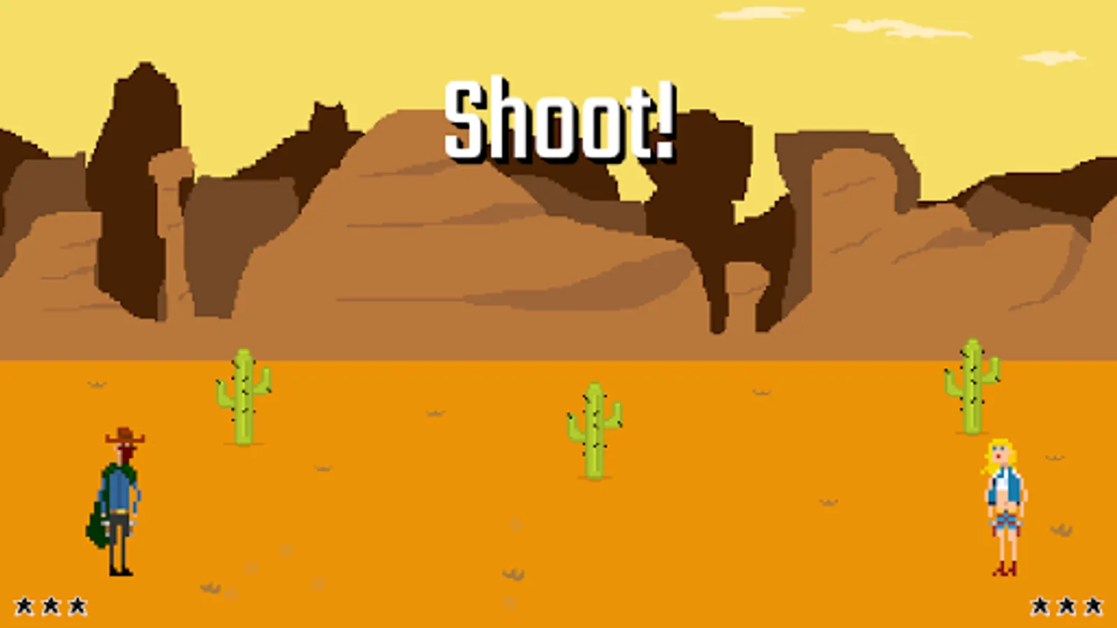Trigger Reflex is a western themed duelling game. 3, 2, 1 Shoot. First to pull the trigger will stay standing.