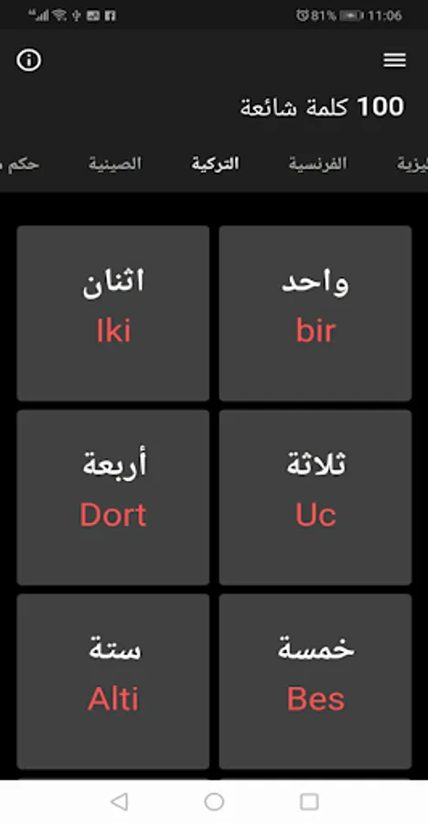 القائمة أدناة لأكثر الكلمات شيوعاً القائمة على أساس أبحاث وتحليل لأكثر من مليار كلمة، أحد هذه الدراسات أجريت بواسطة قاواميس,في ما يخص الانجليزية الدراسة تقول ان أول 25 كلمة تشكل ثلث الكلمات المستخدمة في الإنجليزية والكلمات المئة تشكل حوالي نصف الكلمات الإنجليزية المطبوعة