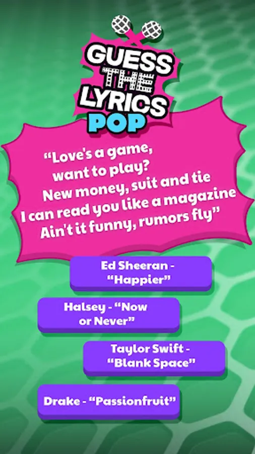 Do you think you know all the top songs right now? If you think you do, test your knowledge right now! Download “Guess The Lyrics Pop Quiz” 2020 and don't miss a single moment of fun that this great “lyrics quiz” is bringing to you! Play and sing your favorite top pop songs and learn some new facts from this popular music genre while you play the pop lyrics quiz! If you enjoy guessing music games and music quizzes you will love this fun app. Guess lyrics to songs or even quiz your friends. Answer fun pop lyrics quiz trivia questions and let yourself be quizzed up by one of the best “music trivia games” ever! Have a blast with top popular songs 2020 and one of the best music quiz games free!