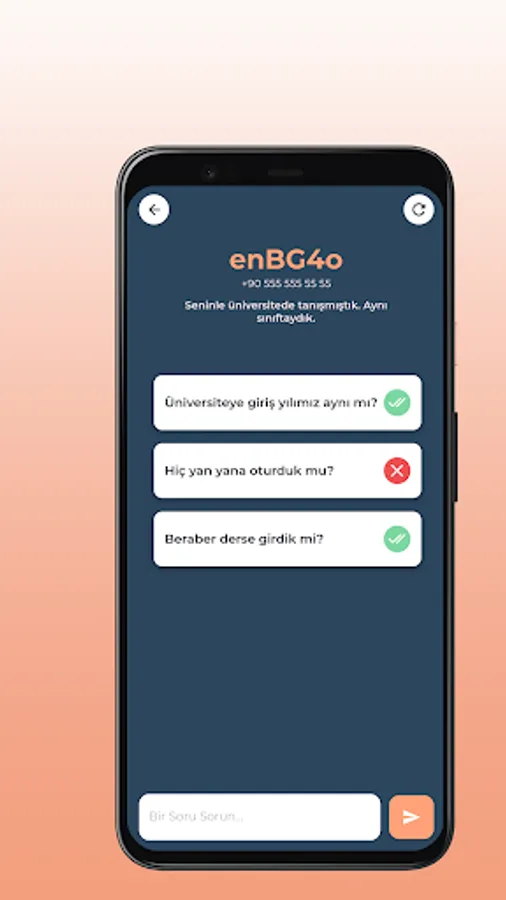 Send clues about yourself to your friends by hiding your identity, and they will guess you with questions within the application. You can only answer yes or no to questions.