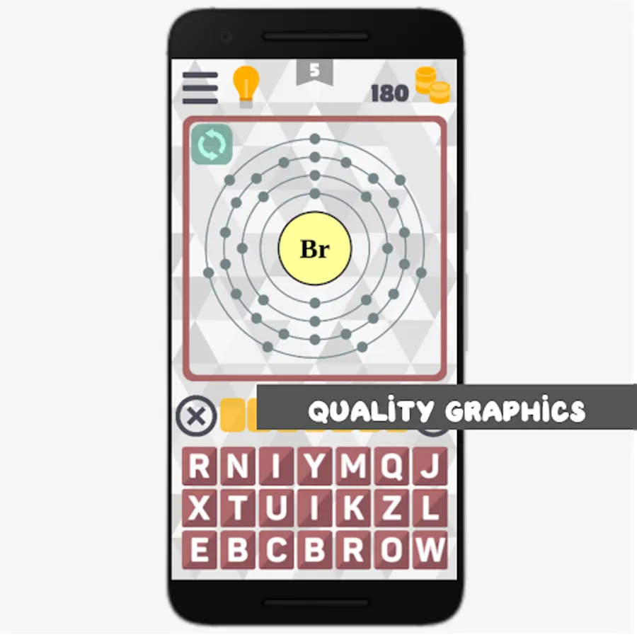 Your goal is to guess every chemicla element from the periodic table and successfully complete the game. Each category contains lots of chemical symbols with atoms. Also, you can use coins to help you get through the quiz. While you are having fun playing the game, you will learn important facts about chemistry.