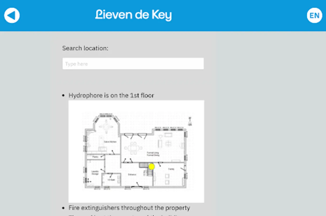 In addition to the digital key, there is information about the location of the maintenance area, contact options, reporting facilities and other useful information.