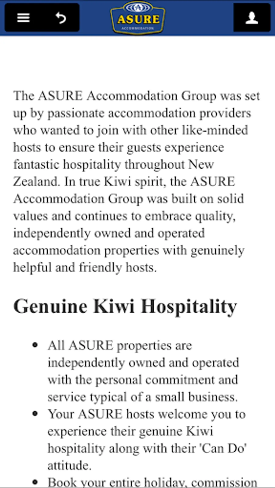 ASURE's group of Motels, Apartments, Motor Inns & Motor Lodges offers you quality and affordable accommodation throughout New Zealand. Use our app to quickly find your nearest ASURE property, make reservations, and keep track of your past reservations.