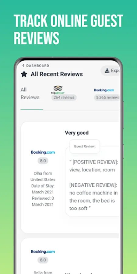- See overall and performance score for your online reviews of your hotels, hostels, restaurants and more.