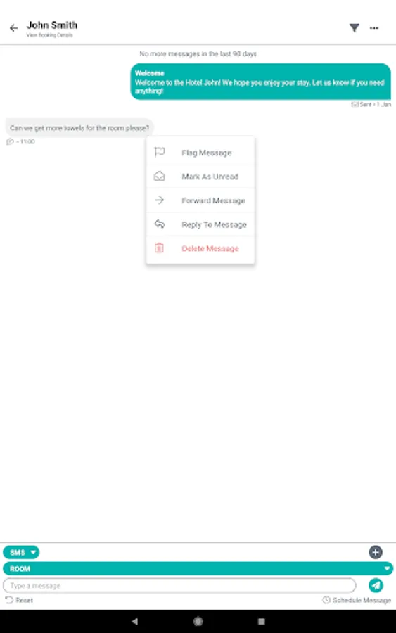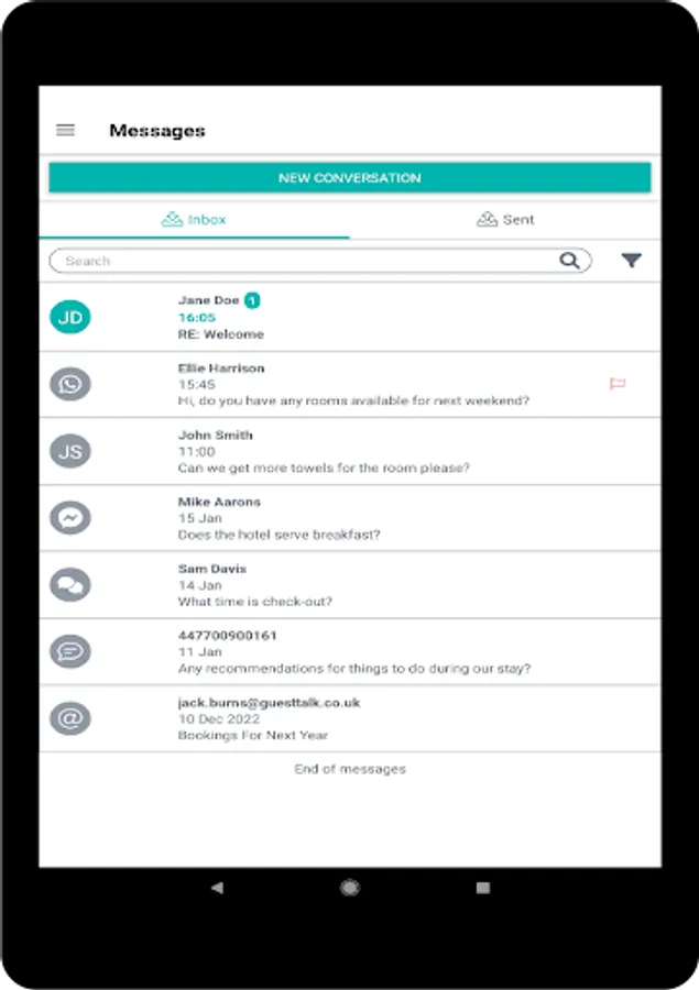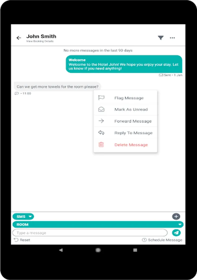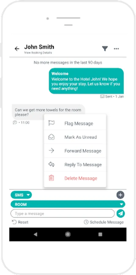 - Manage all messages in one universal inbox making it easy to track, reply or forward messages from your guests.