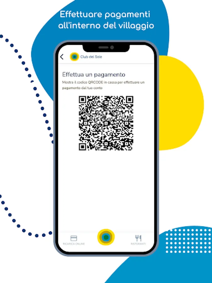 • Use it to make payments at the village in a fast and secure way thanks to the practical dedicated QR code and recharge the MySmartCash service with your credit card and without wasting precious time (only in Family Camping Villages equipped with MySmartCash money service).
