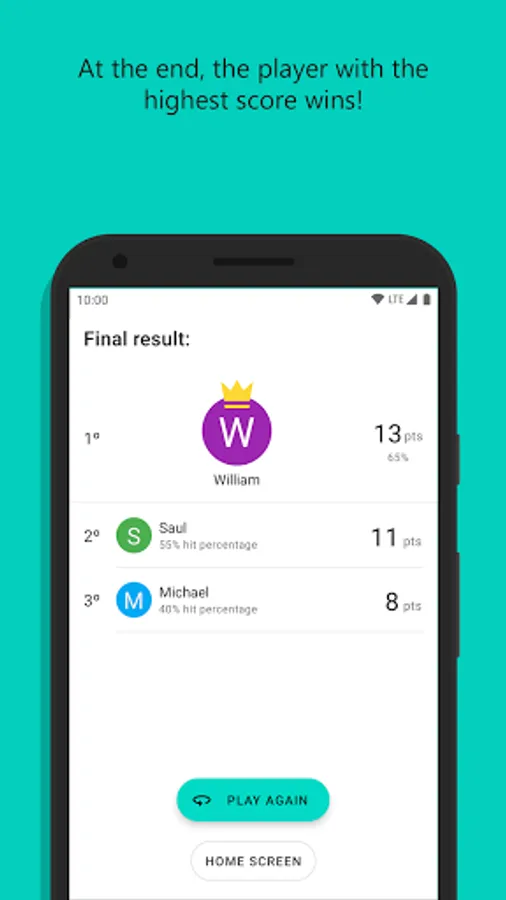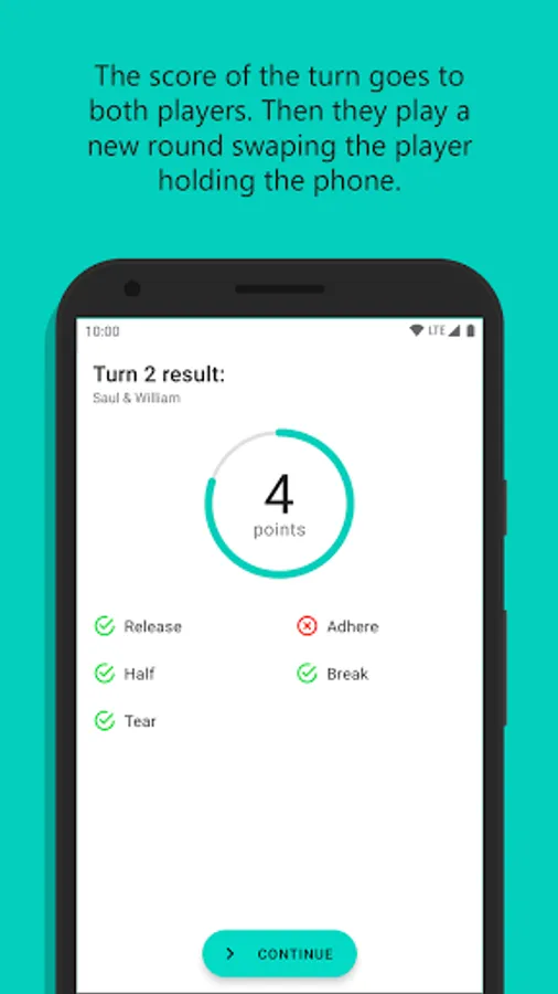 The points scored by the pair go to both participants. At the end, the participant with the higher score wins.
