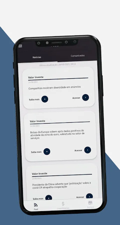 To complement our service package, you will also have access to the most important news from the financial market, made available by the main economics and finance vehicles, such as Valor Investe, Bloomberg and Estadão.