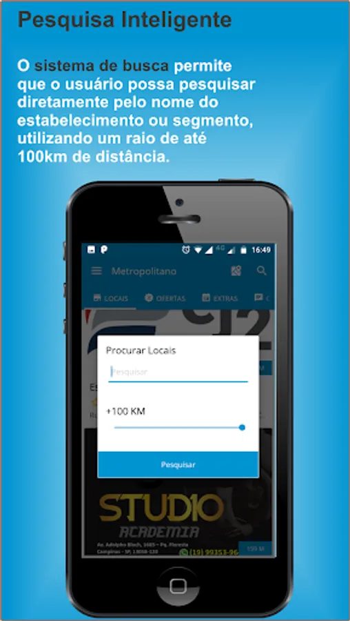 The Metropolitan Guide is a fast and practical application with innovative design, focused on local business research and services, exclusive offers and events in the city and region, with intelligent search functionality. This helps you easily find what you are looking for in your locality.