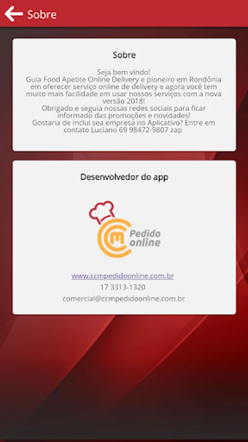Food Appetite Online Delivery Guide this service in the cities: Rolim de Moura / Cacoal / Vilhena in Rondônia
