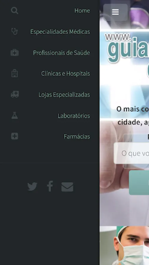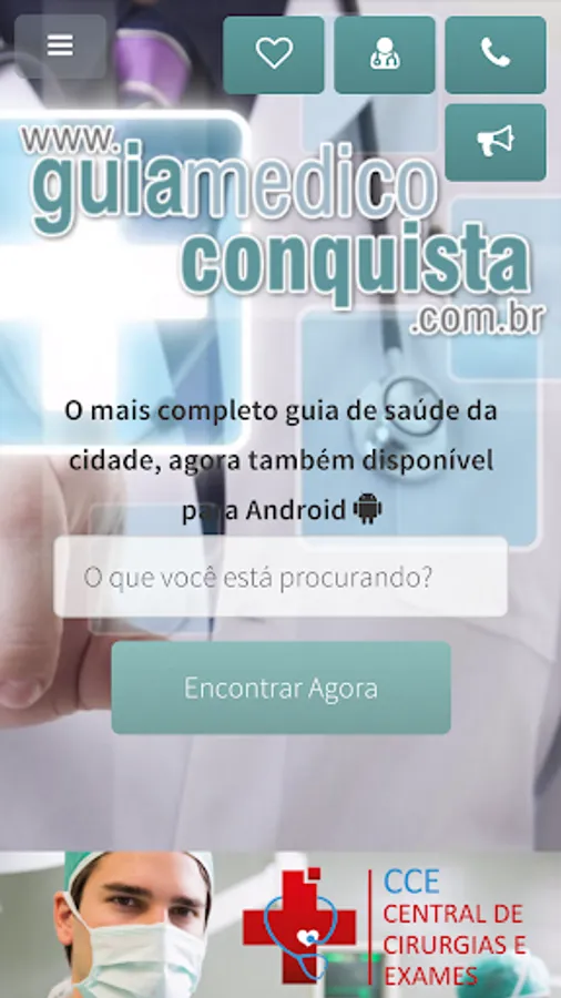 We are an Internet company, called 'GUIAMEDICOCONQUISTA' formed by professionals who care for a differentiated work to bring health services to users of the various health services in a clear, objective and agile. Our goal is to promote medical companies, medical specialties, professionals in various areas of health, clinics, hospitals, pharmacies, laboratories and spas, providing an important service information and support to patients and customers through the most modern media resources: internet. Our main service is the online advertising of doctors, clinics, hospitals, spas, pharmacies, doctors' offices, opticians, laboratories and the various professionals in the health area that also live with the lack of advertising their services. To this end, we enter a market lacking, however, with huge potential to attract the eye of various profiles of patients, customers and consumers. Remember: Your client is out there, and the easy and quick way he has to find it is the Internet! Through this feature, it can know the whole structure of your clinic, hospital, SPAS, Laboratories, Offices and Pharmacy, and of course, make appointments in just a few clicks.