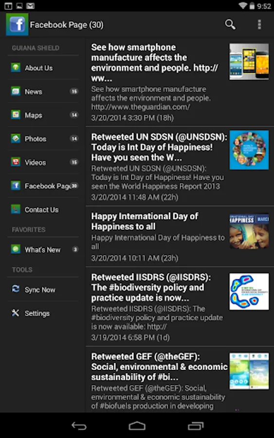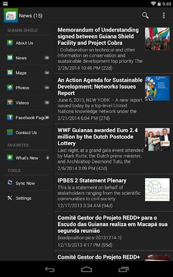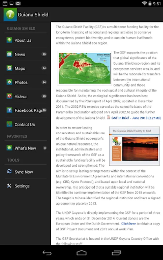 Our App serves as a means to stay up to date with what's happening within the Guiana Shield. We have videos, photos, latest updates, and our facebook feeds among other feeds which will ensure that you're always connected.