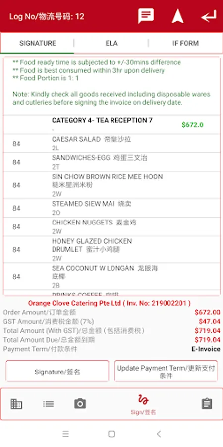 It's a buffet delivery mobile app for neo garden sub contractor used to view their daily delivery orders, logistic list,view order's menu list sign and send invoice to customer, take photos and view invoice.