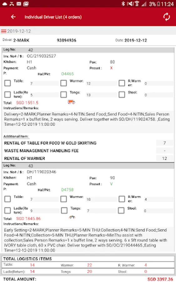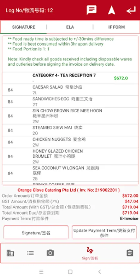 Mobile app which allow user to notify kitchen to prepare food,view menu dishes,take picture, POD and view invoice pdf.