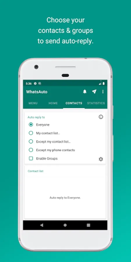 We support groups, WhatsAuto can send auto reply to any groups in your messaging app.