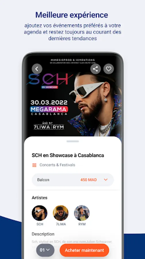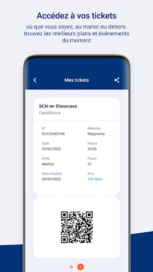 Guichet.com! The number 1 application for digital ticketing in Morocco. It provides culture lovers with the best events! Between theatrical plays, concerts, festivals, or even football matches, Guichet.com transports its customers to a revolutionary universe, where various events are offered to them!