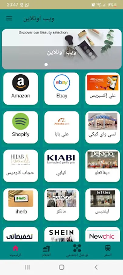 التطبيق هو وجهة تسوق للعديد من المتاجر الشهيرة ، والسفر ، ووسائل التواصل الاجتماعي ، والمواقع