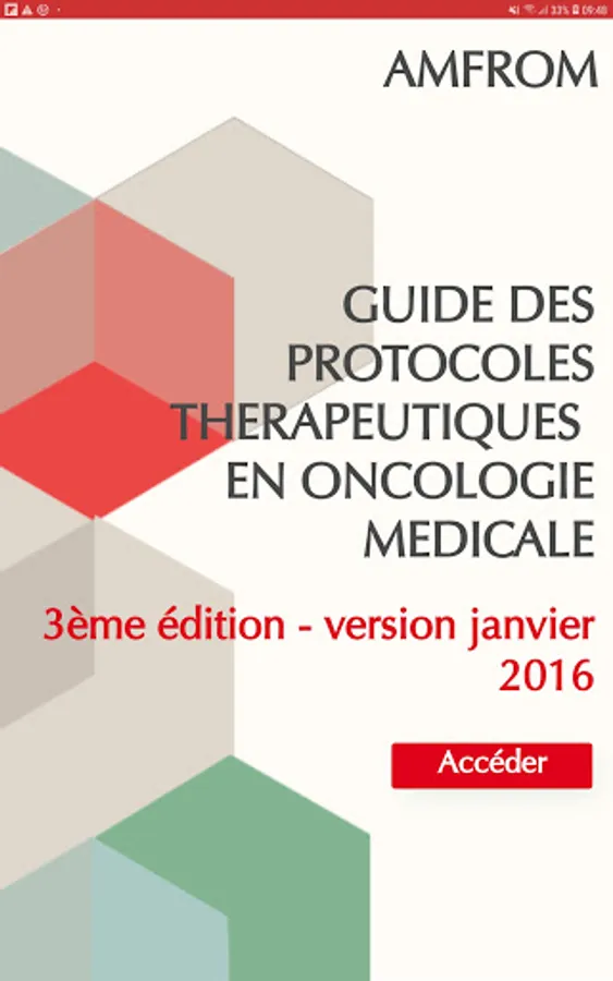 The 3rd edition of the guide to medical oncology protocols testifies once again to the hard and continuous work of the community of national medical oncologists federated and represented by their Moroccan Association for Training and Research in Medical Oncology (AMFROM).