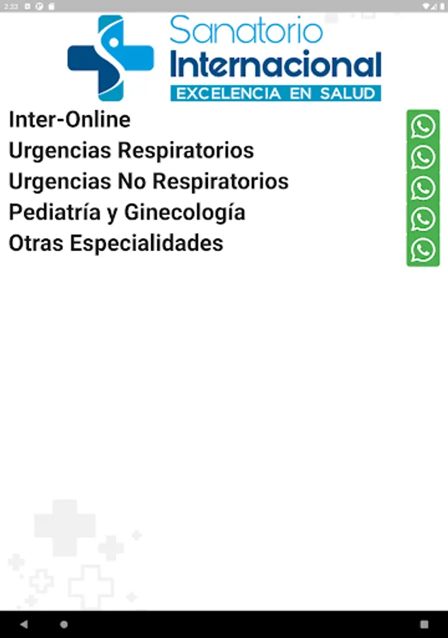 With the new APP of the Sanatorio Internacional de Luque, you will find all information regarding our services of Consultations, Hospitalizations,