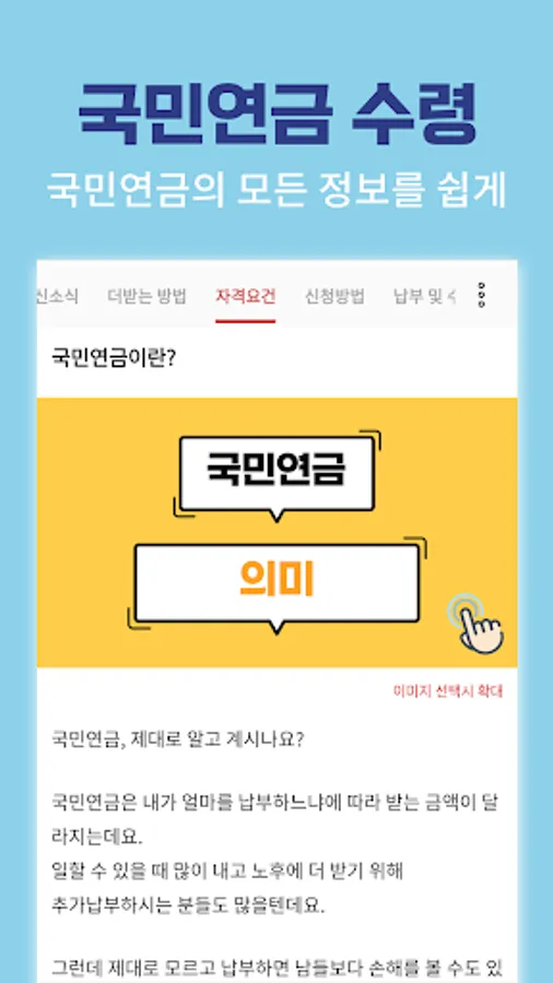 The app provides all information on receiving the national pension, as well as various functions such as how to apply for the national pension and pension calculation.