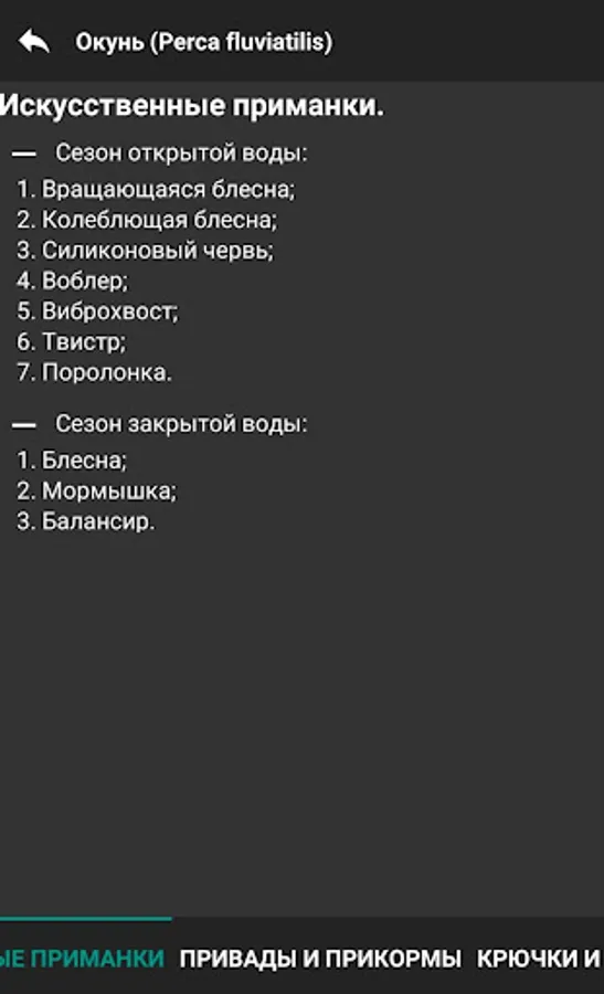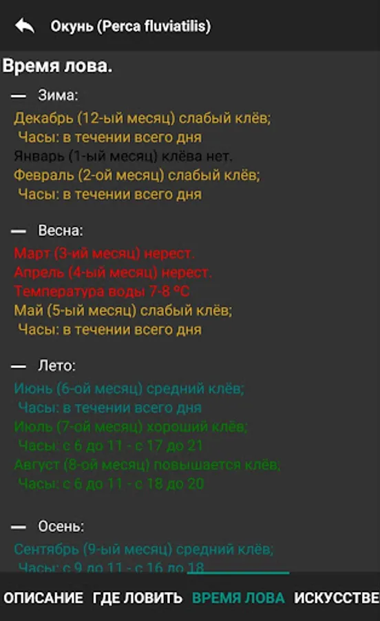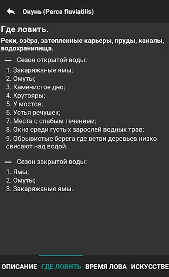 The directories describe the most popular for fishing in Russia. Specified fish habitat, fishing time, bait and lures, etc.