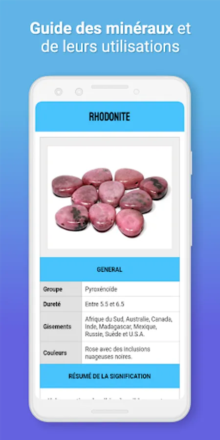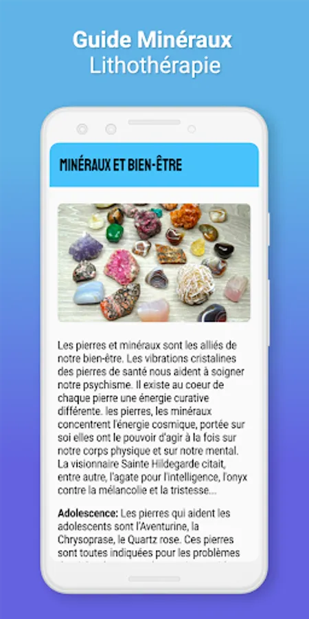 Are you looking for an app that allows you to easily identify minerals and their attributes? The minerals guide will reveal the secrets and characteristics of each stone to you.