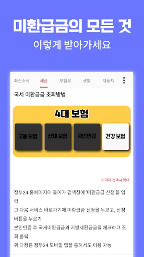 You can check refund application services such as communication expenses, local taxes, and health insurance.