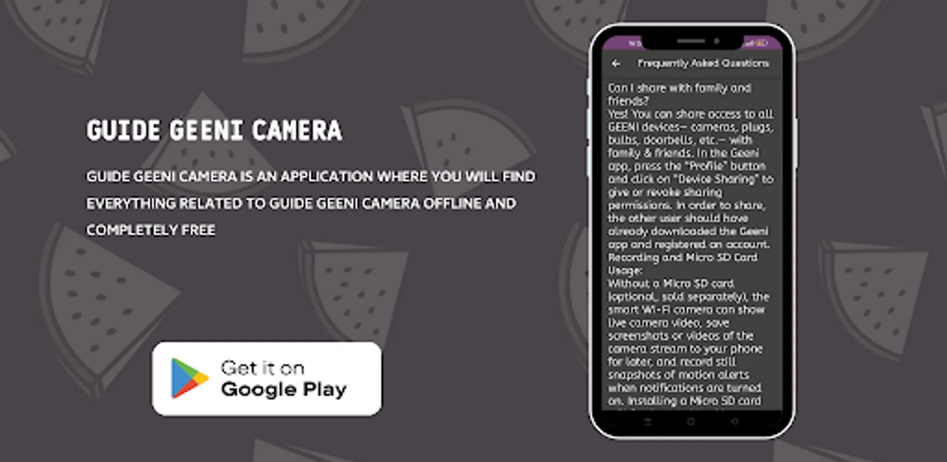 This app is a guide that explains the features of Geeni Home Security Camera, how to set up and share your device, frequently asked questions and how to sync Amazon Alexa and Google Assistant