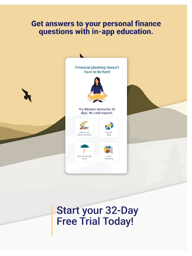3Nickels is more than just a Robo-Advisor. It’s The Financial Advisor In Your Pocket(sm). Try out the full app for 32 days, no credit card required! Get access to robust, holistic financial advice for your entire household and learn how to start paying down debt and building wealth.