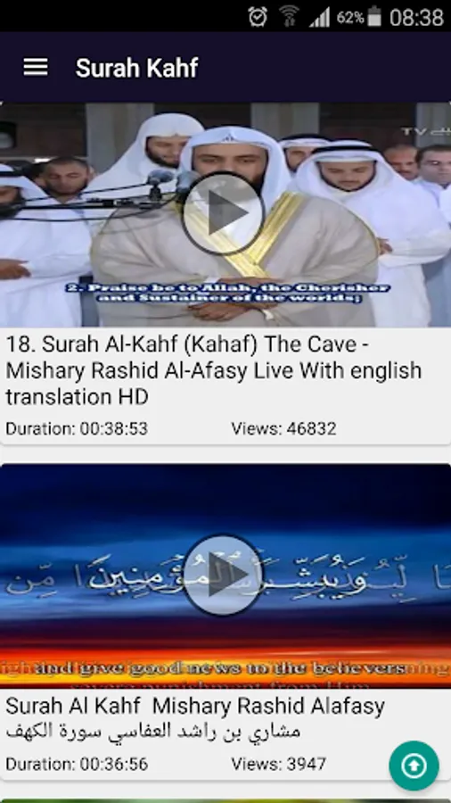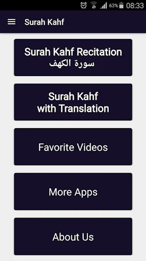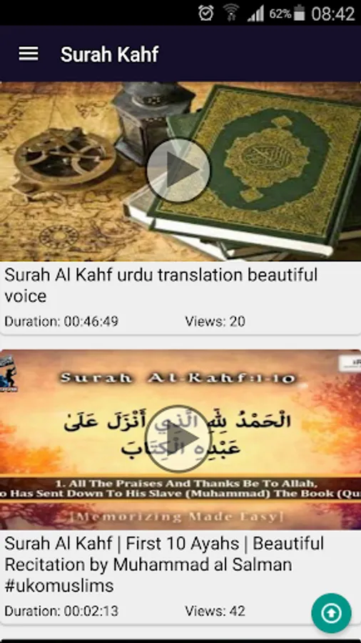 The app contain surah al kahf with Recitation and Translation in Urdu/Hindi Language. There are multiple famous reciter who have recited Surah al Kahf. The application enable people to listen and learn the beautiful Surah of Holy Quran. It also let the people have to listen to the beautiful recitation of the surah by different famous reciters.