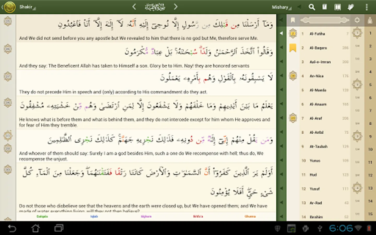 Read the Holy Quran in Arabic alongside its translation. This app provides you with the full Qur'an as well as its full english translation along with a full set of audio recitation files. iQuran offers you verse by verse audio playback, color coded Tajweed (pronunciation) rules, repeat functions, bookmarks, tags, search, excellent navigational controls, a side by side english translation, audio recitation and much more.