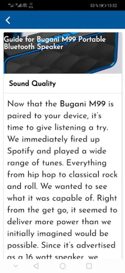 The app allows you to take advantage of the specifics of Bugani M99 , it allows you to understand how to use the specifics of Bugani 99. With this app you will enjoy the music in the best conditions