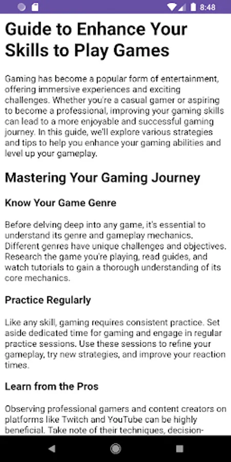 Guide For Playing Game Better is an innovative app designed to elevate your gaming skills and enhance your gaming experience. Whether you're a seasoned gamer looking to sharpen your abilities or a beginner seeking guidance, this app is your ultimate companion in the world of gaming.