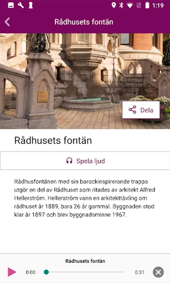 · Audio guides, texts, pictures and videos about exhibitions, popular locations or city tours in Helsingborg