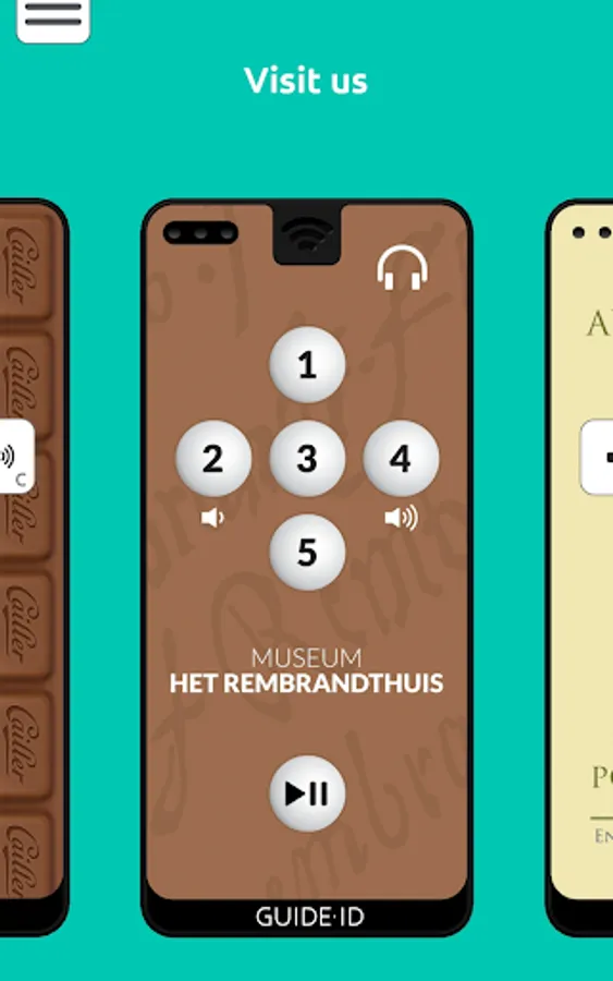 • ABC-buttons for quizzes and treasure hunts, get the chance to interact with the tour.