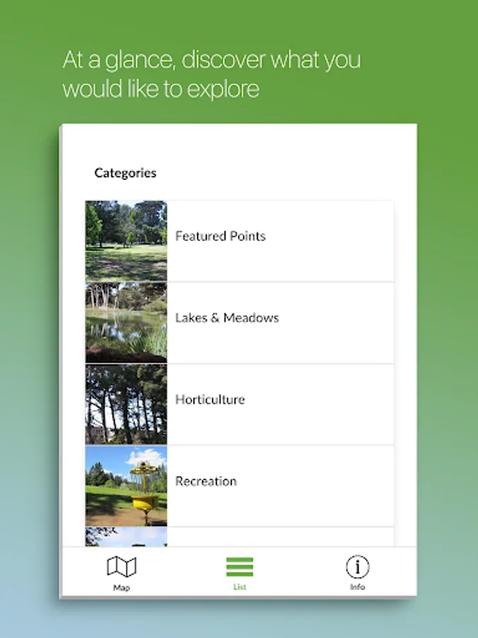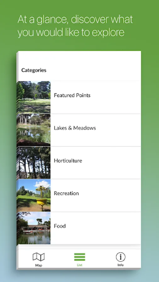 • Browse over 100 categorized points of interest in the park