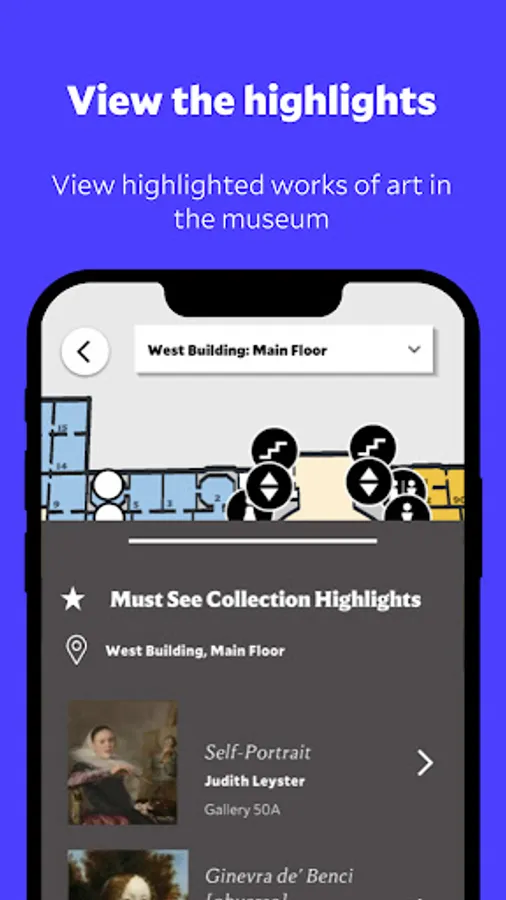 • Pinpoint your location on an interactive map to navigate the West Building, East Building, and Sculpture Garden