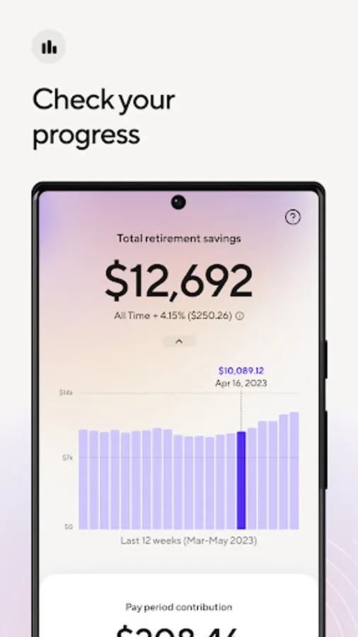 See your portfolio, performance, and total 401(k) retirement savings to date.