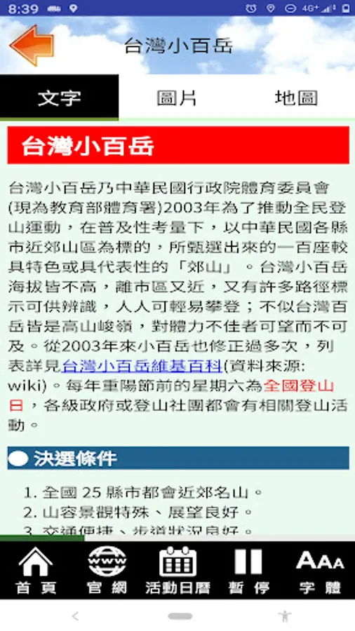 Xiaobaiyue is a very popular outdoor sport promoted in Taiwan. Although there are quite a lot of information blogs, most of them are lists of Xiaobaiyue, basic information of mountains, such as height. And many netizens' blogs or videos. Therefore, collect, organize and develop a practical Xiaobaiyue Pocket Book App that can be mastered at one hand, to view and arrange at any time, enjoy the happy time of mountain climbing, and hope to be helpful to mountain friends and have an in-depth understanding of the mountains.