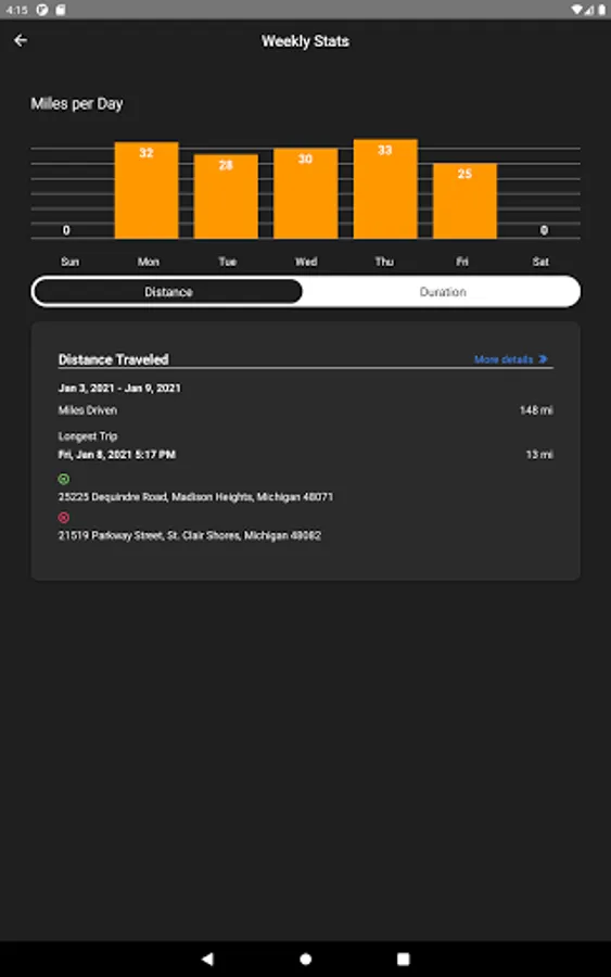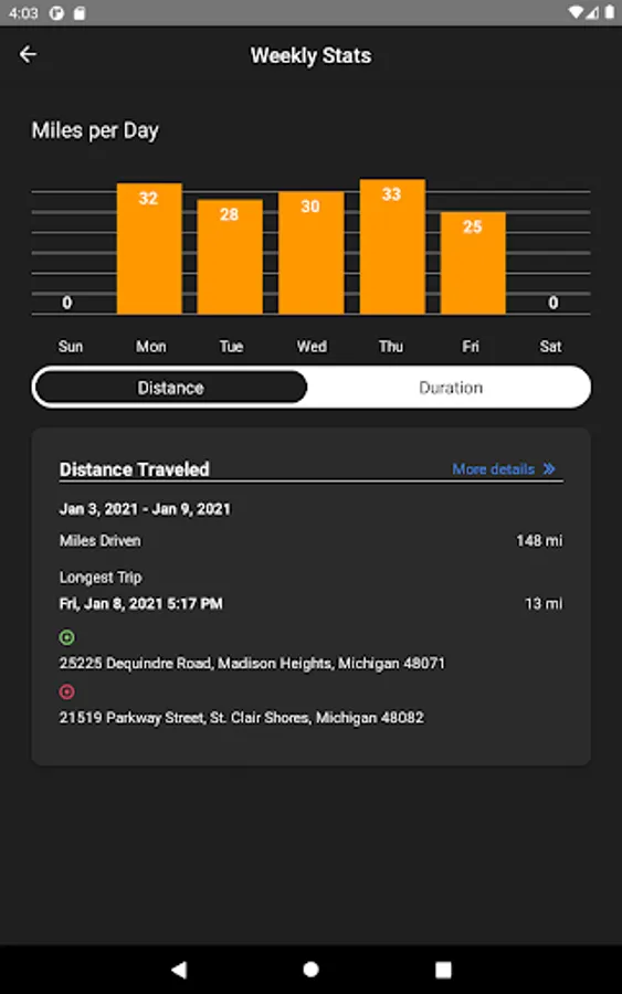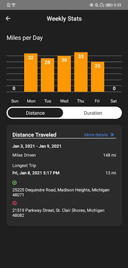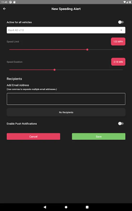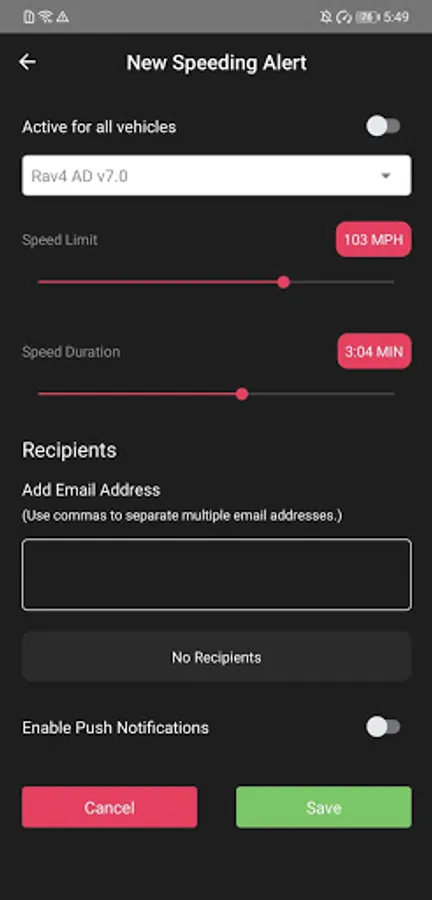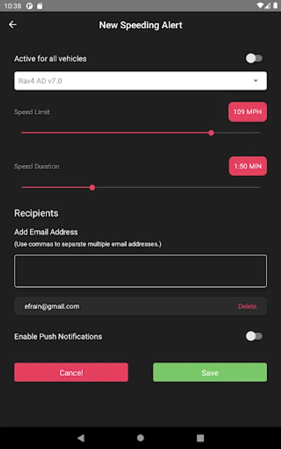See your trips history, statistics of time and distance, create geofences and assign them to vehicles, edit your vehicle information, create new alerts for speeding, low battery or power disconnect.
