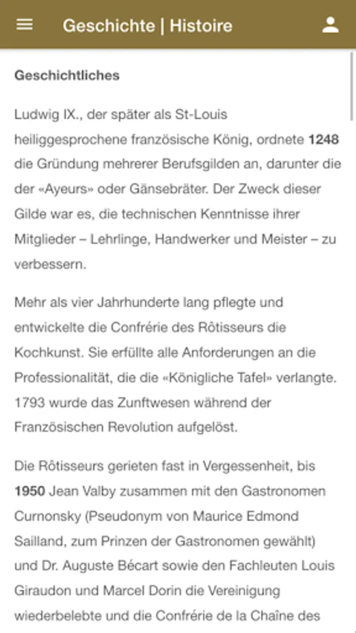 The Chaîne des Rôtisseurs invites all lovers of refined gastronomy, good food and fine wines to share the values of professional craftsmanship and friendship. The Guide 2021 explains the values and objectives of the Chaîne and explains the activities of the Chaîne. The 21 Bailliagen with the responsible committees as well as the associated companies with the professional members are also portrayed here.