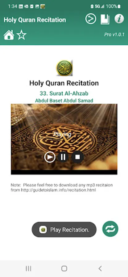 Holy Quran Recitation Pro app is an application under the Android platform which allow users to listen to the Holy Quran recitations and here are some of the benefits: