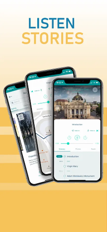 • AUDIO STORIES AND GUIDED TOURS – You can explore the city with prerecorded audio stories or choose a tour with a local tour guide (where available)