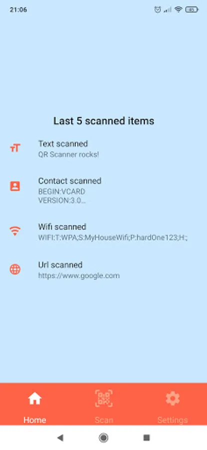 Ideal application so that you can read any QR-Code. With it you can read Urls, Wifi, Phones, Sms, Emails and Contacts, so you can take some actions such as visiting the Url read, or calling or sending an SMS to a phone number, or simply share the information read with your friend.