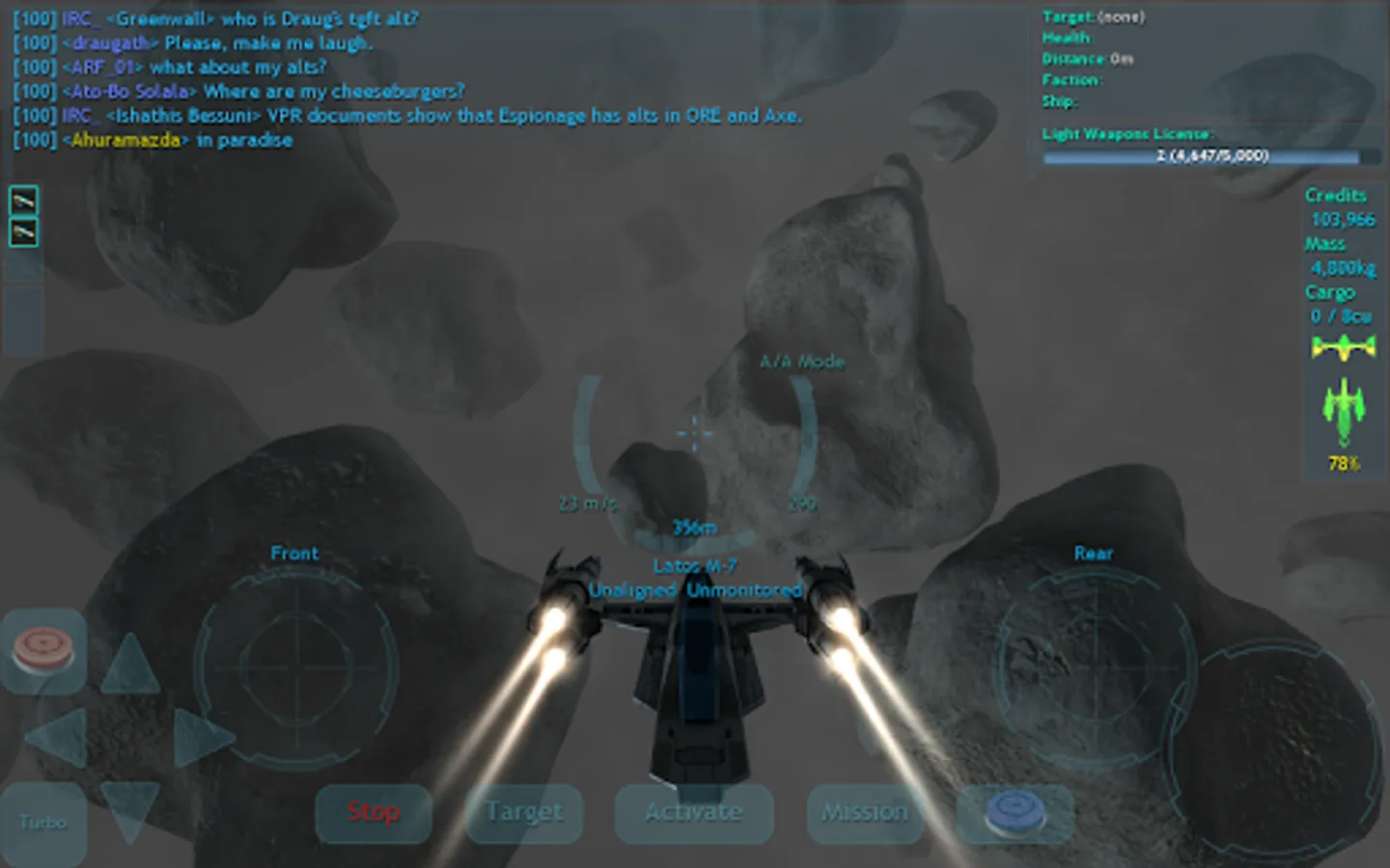 Vendetta Online is free-to-play on Android, with no level caps. An optional low subscription cost of only $1 per month allows access to large Capital Ship construction. The Android version includes several helpful features: