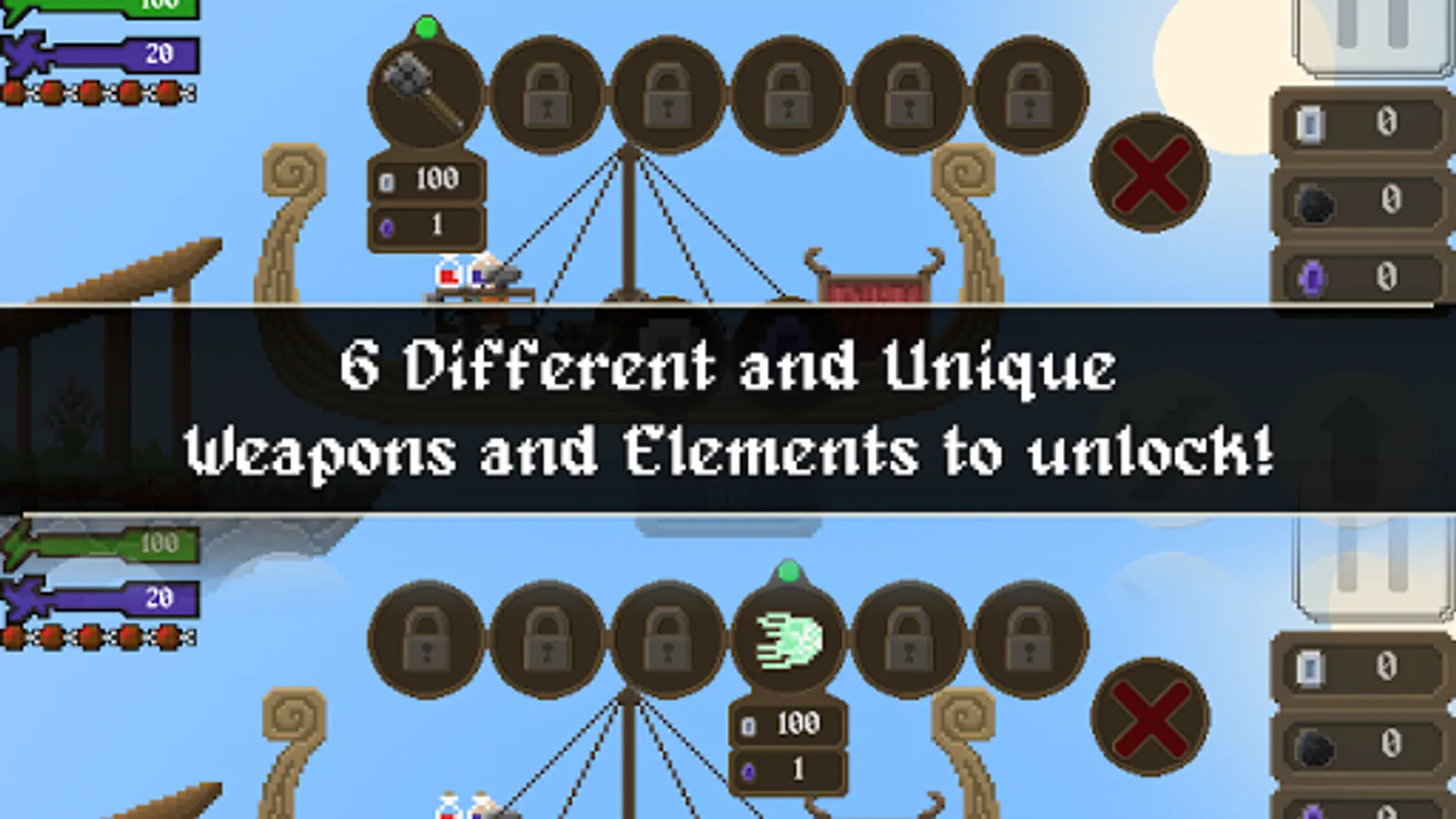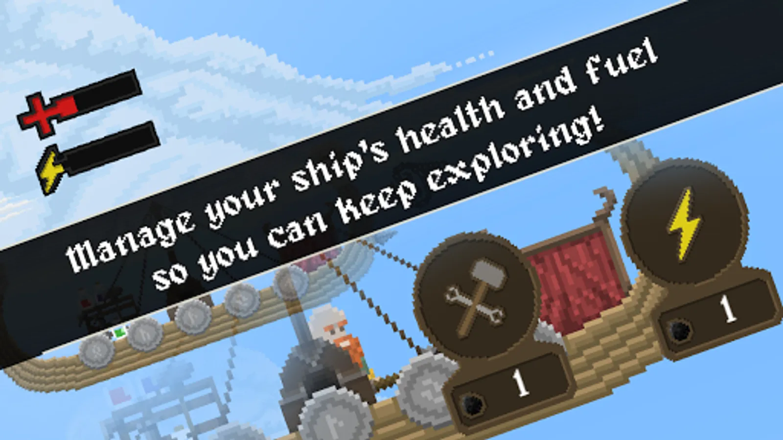 In Skyward, you can play as a bearded guy, or a tough lady, sailing away in your ship, exploring endless floating islands, defeating the corrupted enemies living in your world. In each run, you may get different weapons and elements that will help you in that task.