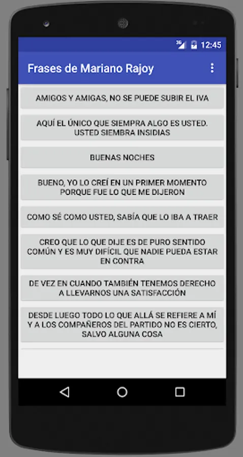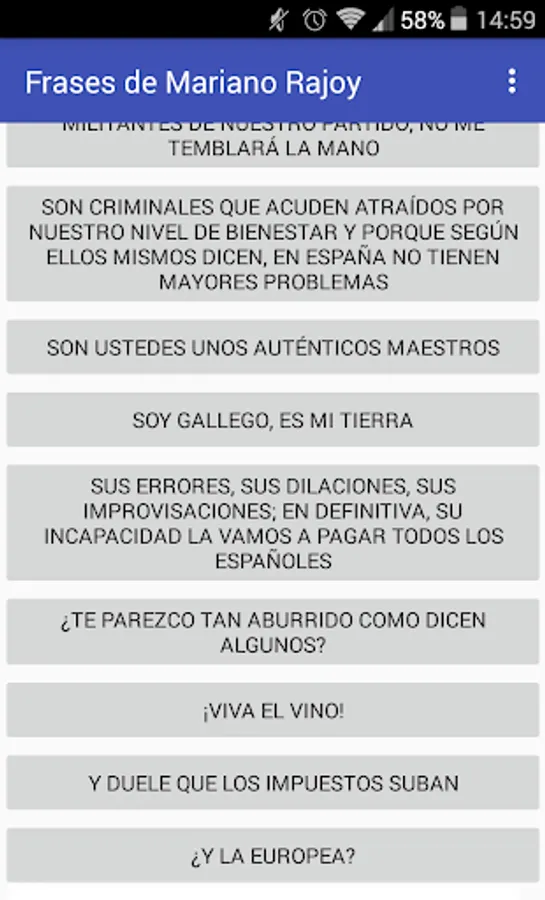 The operation is simple: click on any phrase to reproduce it or keep your finger for a moment to send it to your friends through instant messaging applications.