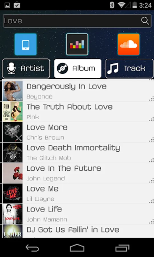 - Music streaming services: all your music libraries (local library, Deezer, Spotify and SoundCloud) are centralized in a single app
